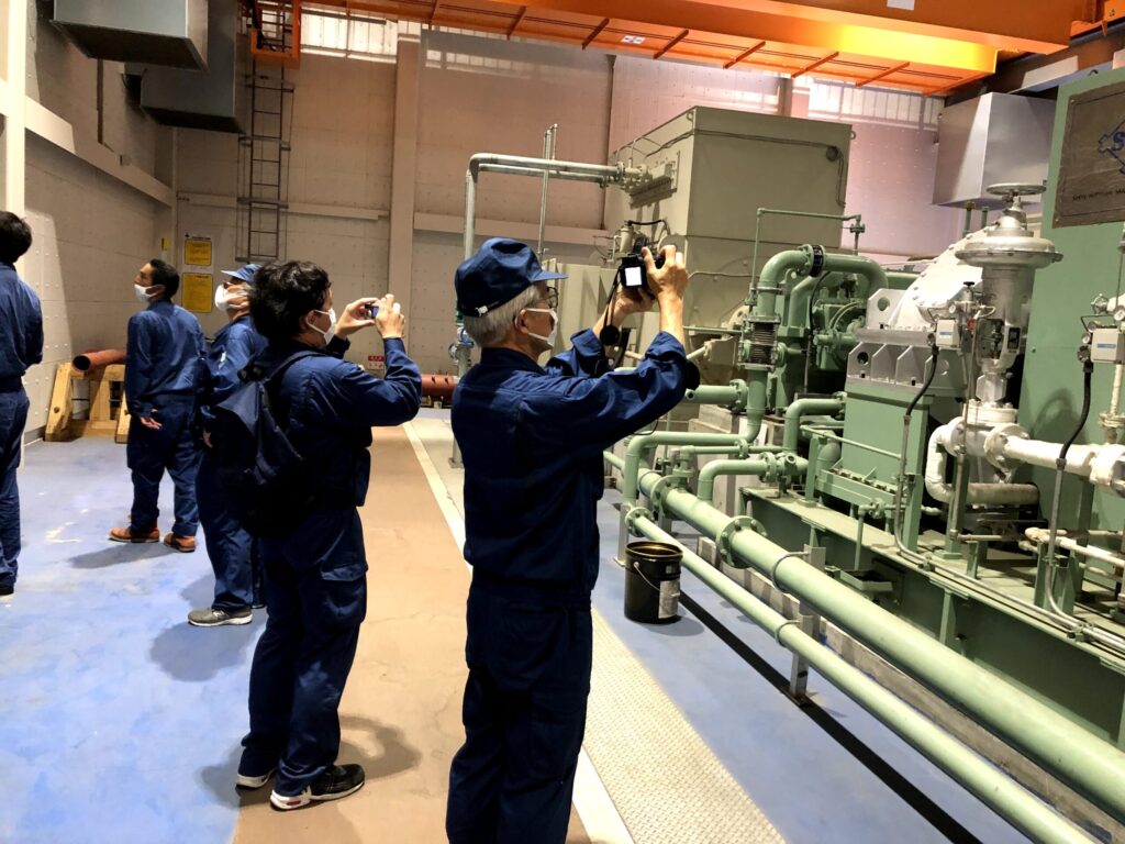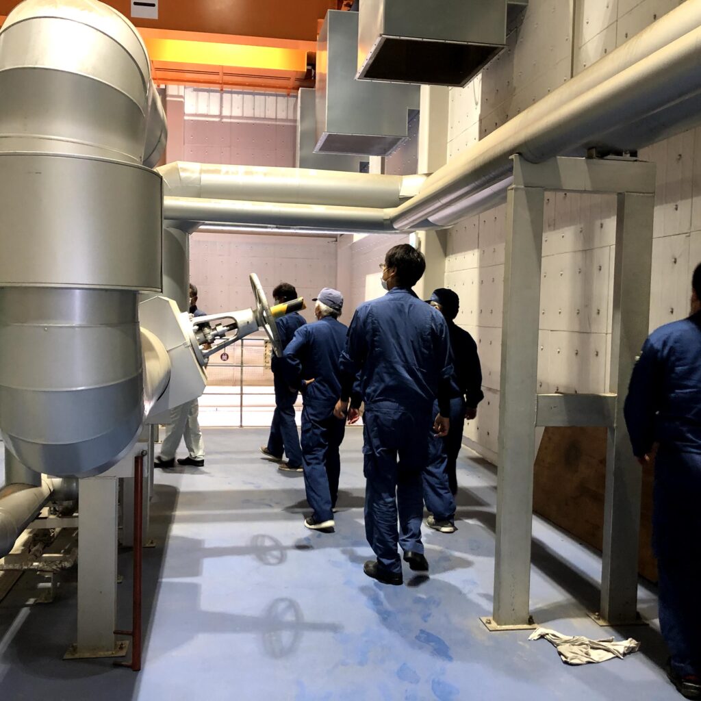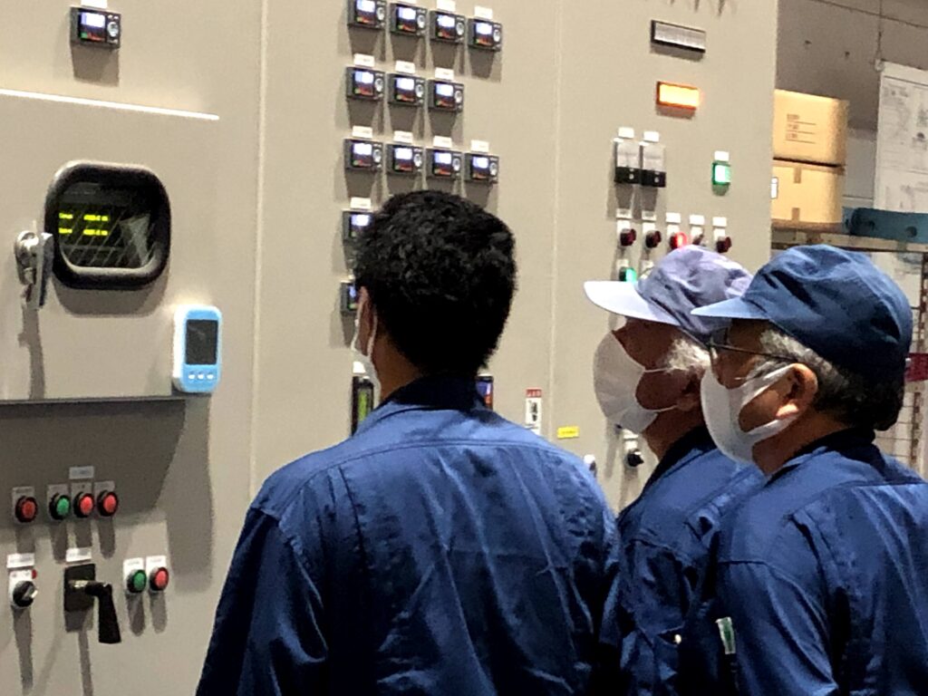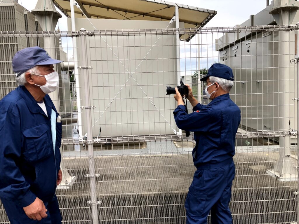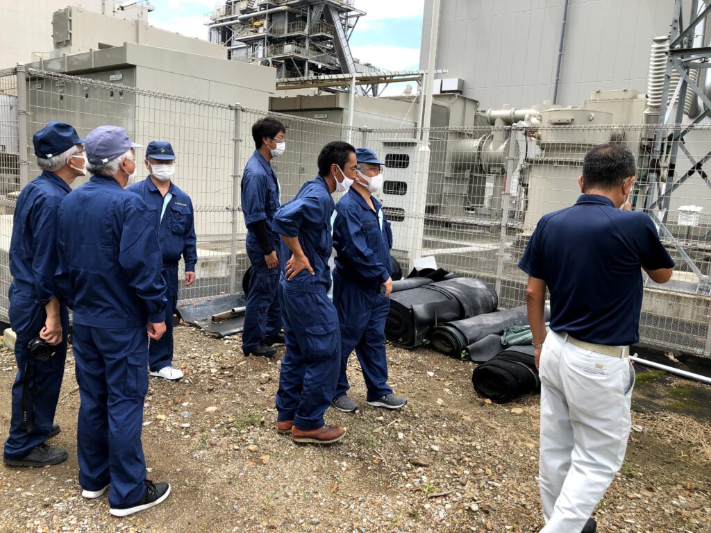 弊社が行っている仕事と同じ電気設備なので、みんな興味深く見ていました。