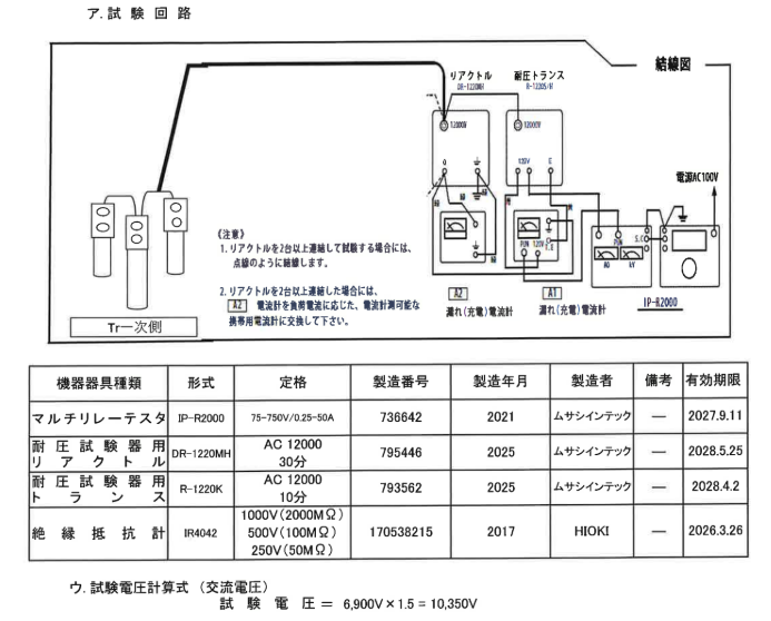 印加電圧: AC 10,350V (※最大使用電圧6,900Vの1.5倍を印加)