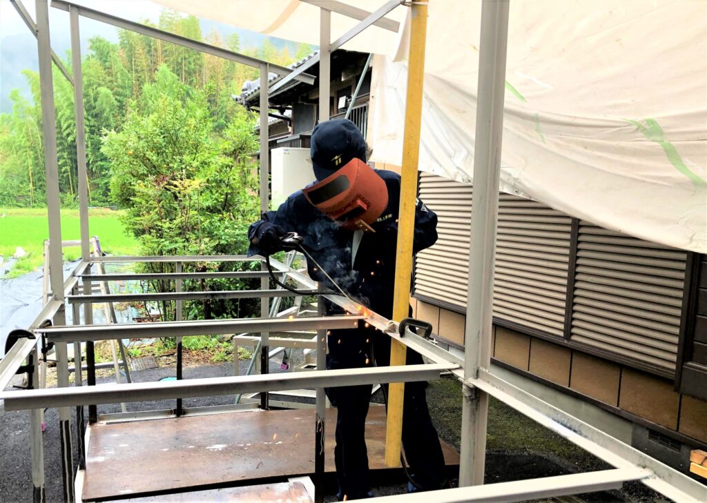 溶接をして棚を付けて仕上げます。