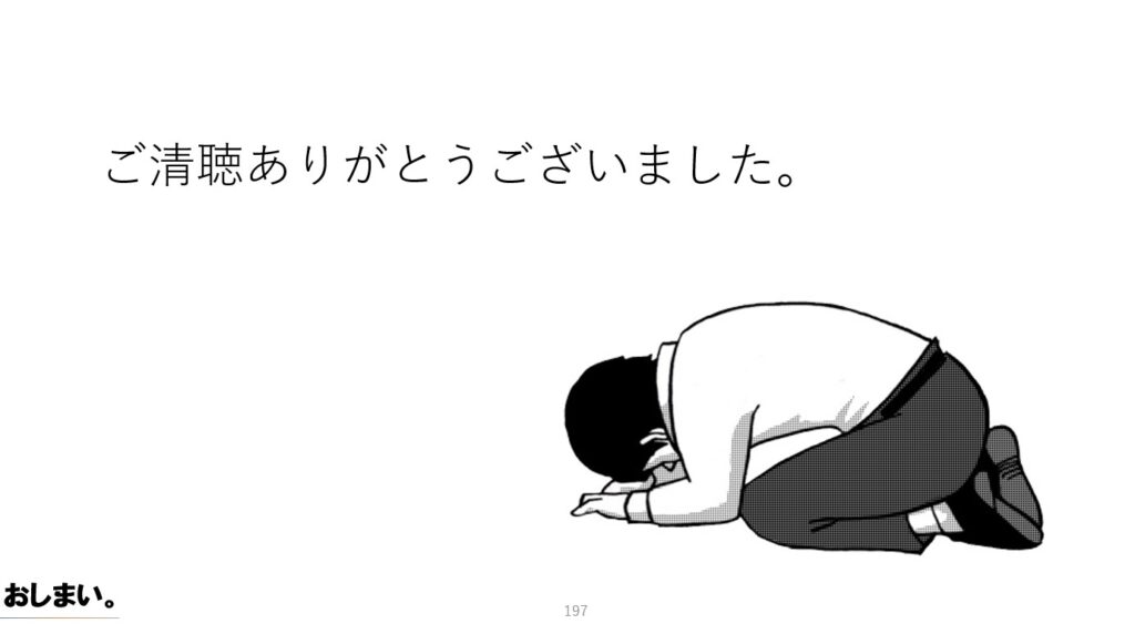 最後の終わり方も彼らしいジョークの効いたモノでした。