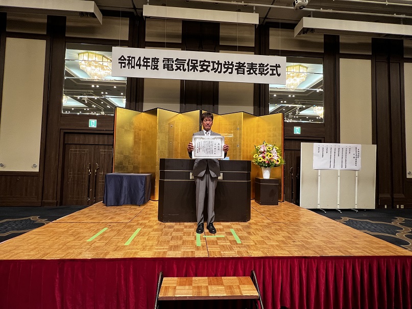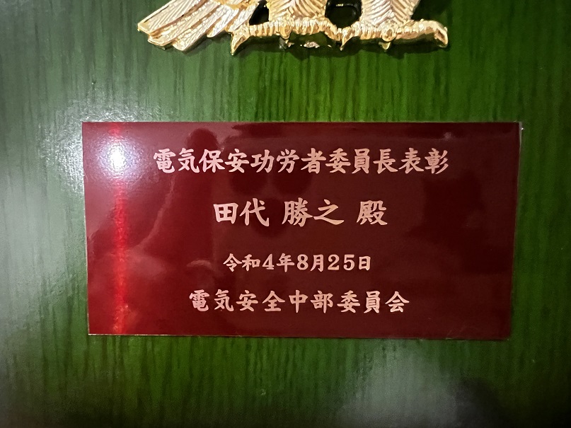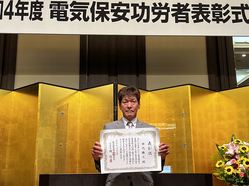 弊社のベテランエンジニアの田代勝之が「電気保安功労者表彰」という名誉ある賞をいただきました。