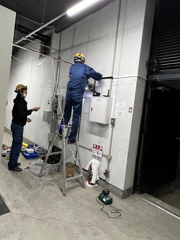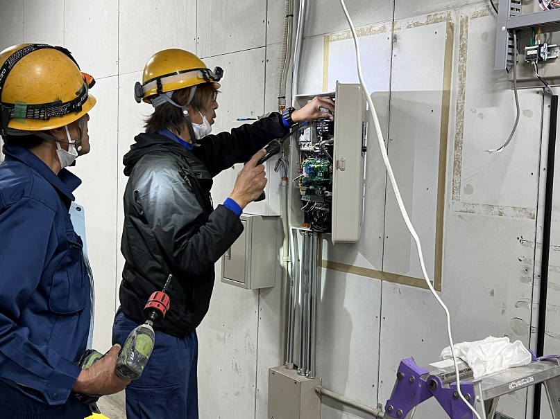 カメラと監視装置をつける作業です。