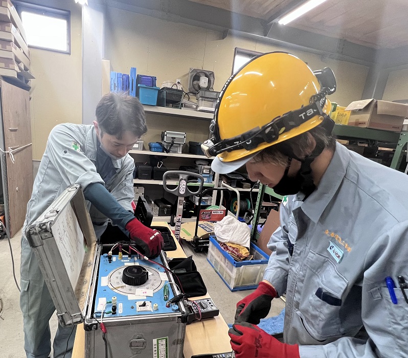 「活線工具の耐圧試験」を行う作業を指導していました。