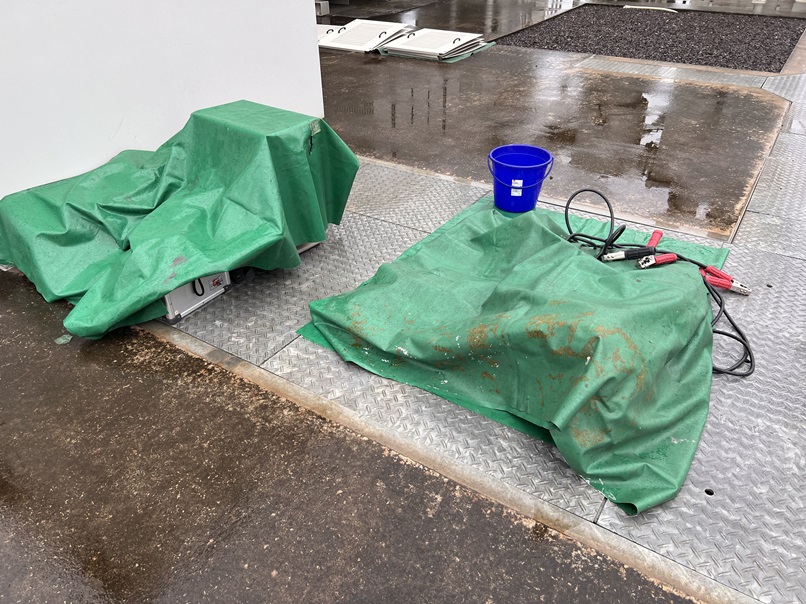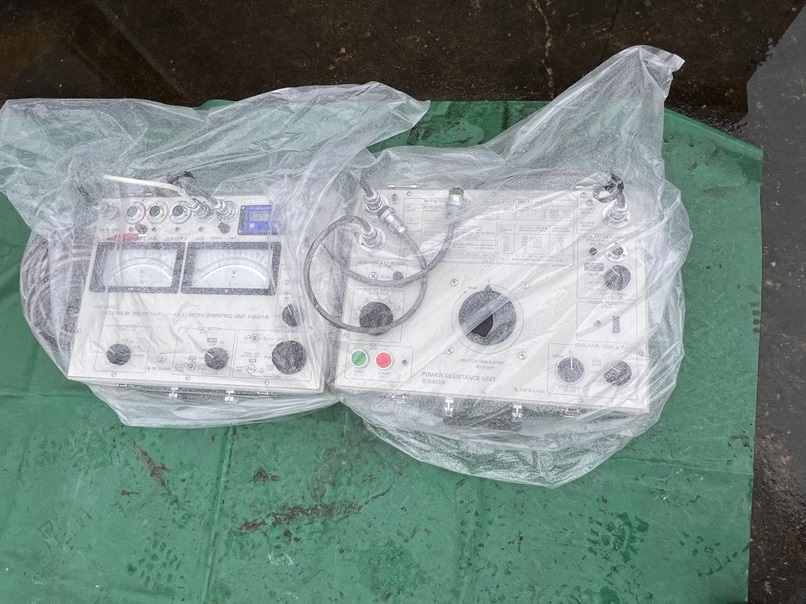 また、リレー試験器は雨から守るためにしっかりと養生をして使用しました。