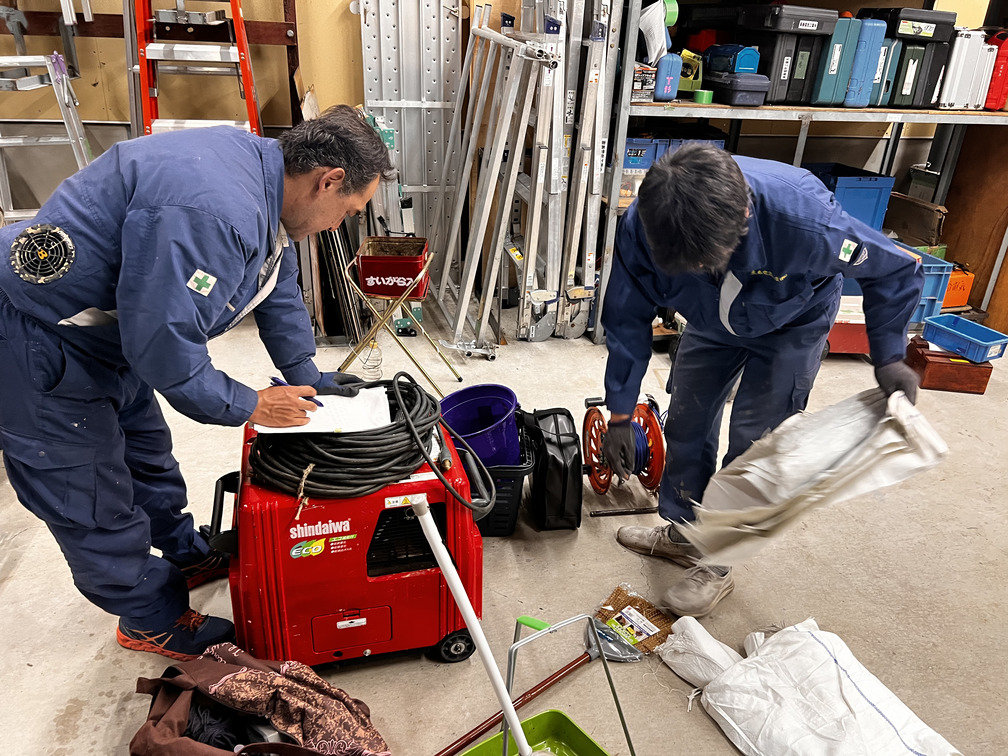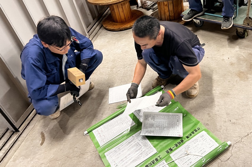 社員で準備を行い、必要な機材や工具が揃っているかをチェックリストで確認します。