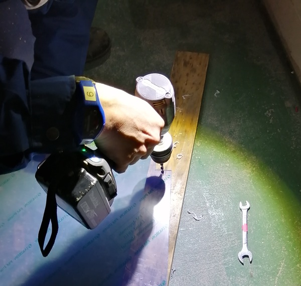 今回も、カバーの形や取付位置に合わせて、アクリル板をその場で切って加工しました。