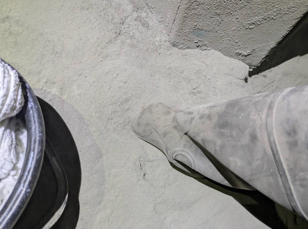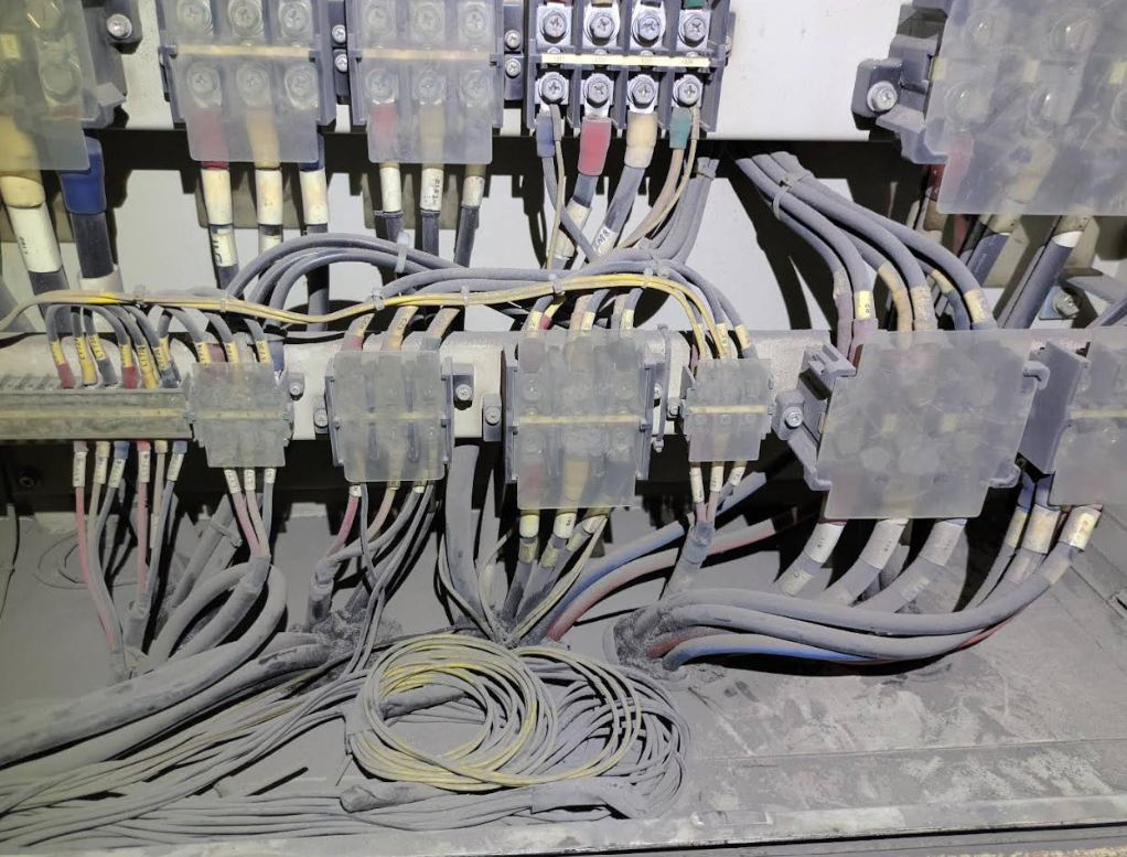 長年たまった粉じんで、配線や機器がすっかり覆われていました。