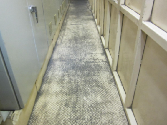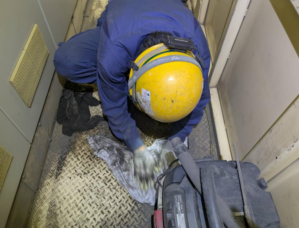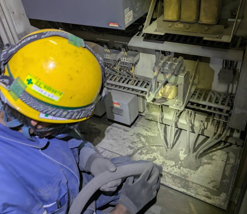 今回は製造ラインを支える天井クレーンの電気室を夜間3日間で清掃。