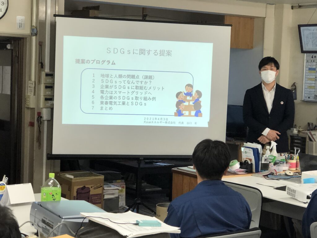 「東春電気が取り組めるSDGs」をグループで話し合いました。