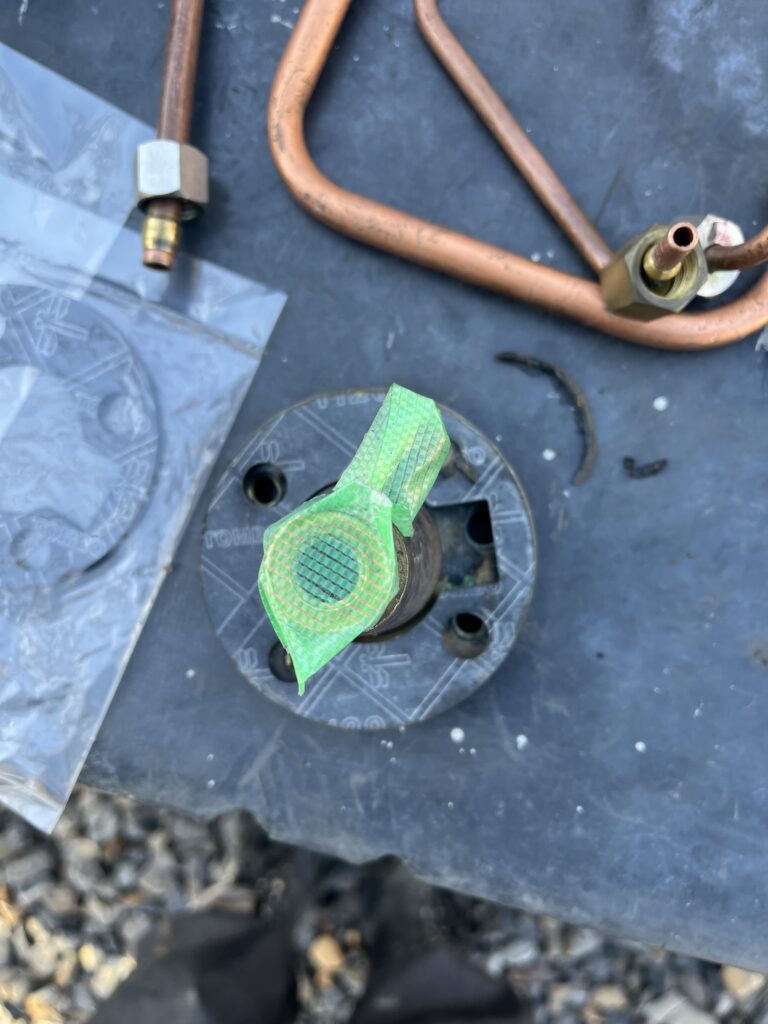 電磁弁の清掃が終わり次第細い配管も組み上げていきます。組み上げていくときも同様に無理に配管を取り付けるのではなく、入るところを探りながら取り付けていきます。ネジ山が2つ3つほど入ったらスパナ、モンキー等で締め付けます。この時に油断して、硬くなっているのに締め付けないように気を付けます。