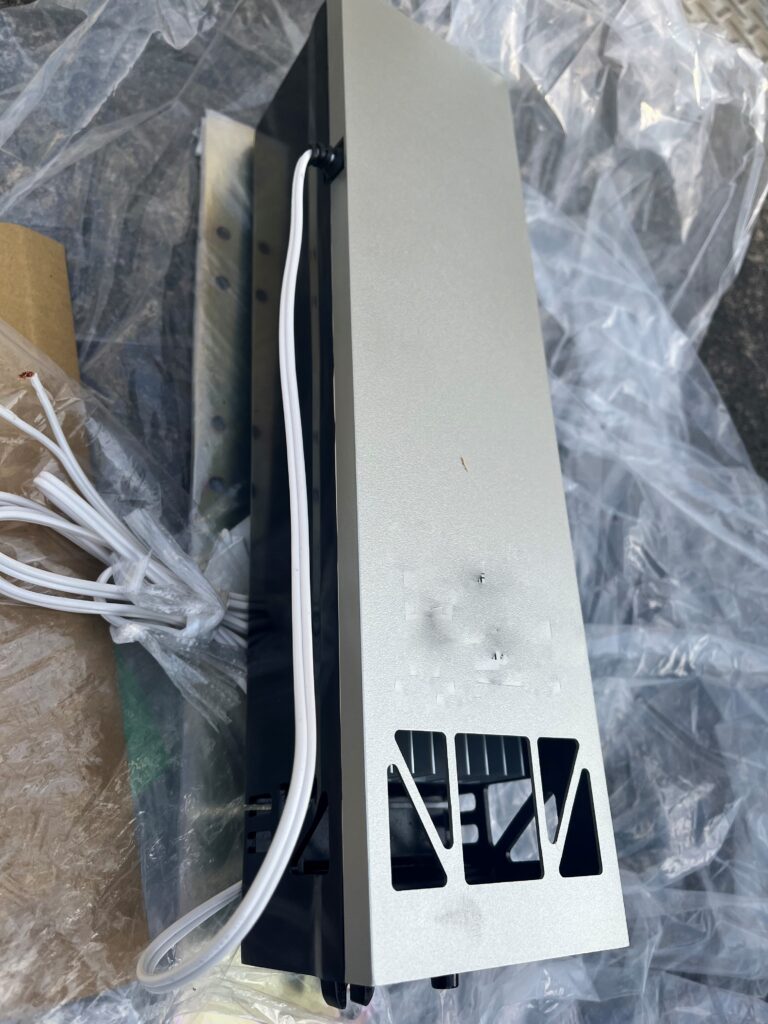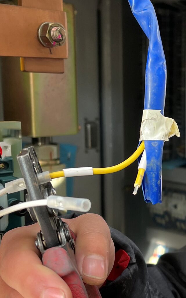 電源を切ったら、テスターで電圧がないことを確認します。ないことが分かったら、機器側の線とバンロムの線を切ります。この時にインシュロックが邪魔になってくるのと、バンロムを外す時に邪魔になるのでバンロムの線がインシュロックで固定されてたら、すべて切り離します。