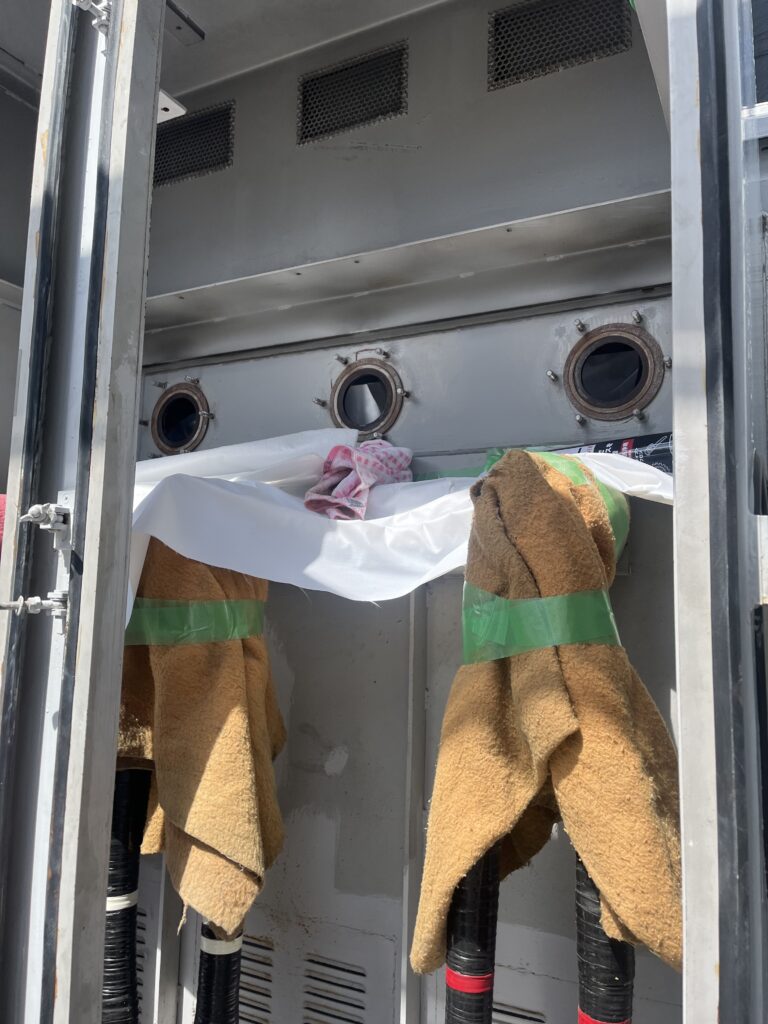 今回はトランスのオーバーホールにあたっての二次ブッシング取り外しをおこないました。二次ブッシングを取り外すときには、外の固定ボルトとTrの中にあるリード線を外さないと取れてきません。なので、Trの中にある油を抜いてハンドホールの中に潜り込んで作業します。Trの中に入っての作業になるので、絶対にものを落ちないようにしなければいけません。ポケットにものを入れないのはもちろんですが、髪の毛も入らないようにします。
