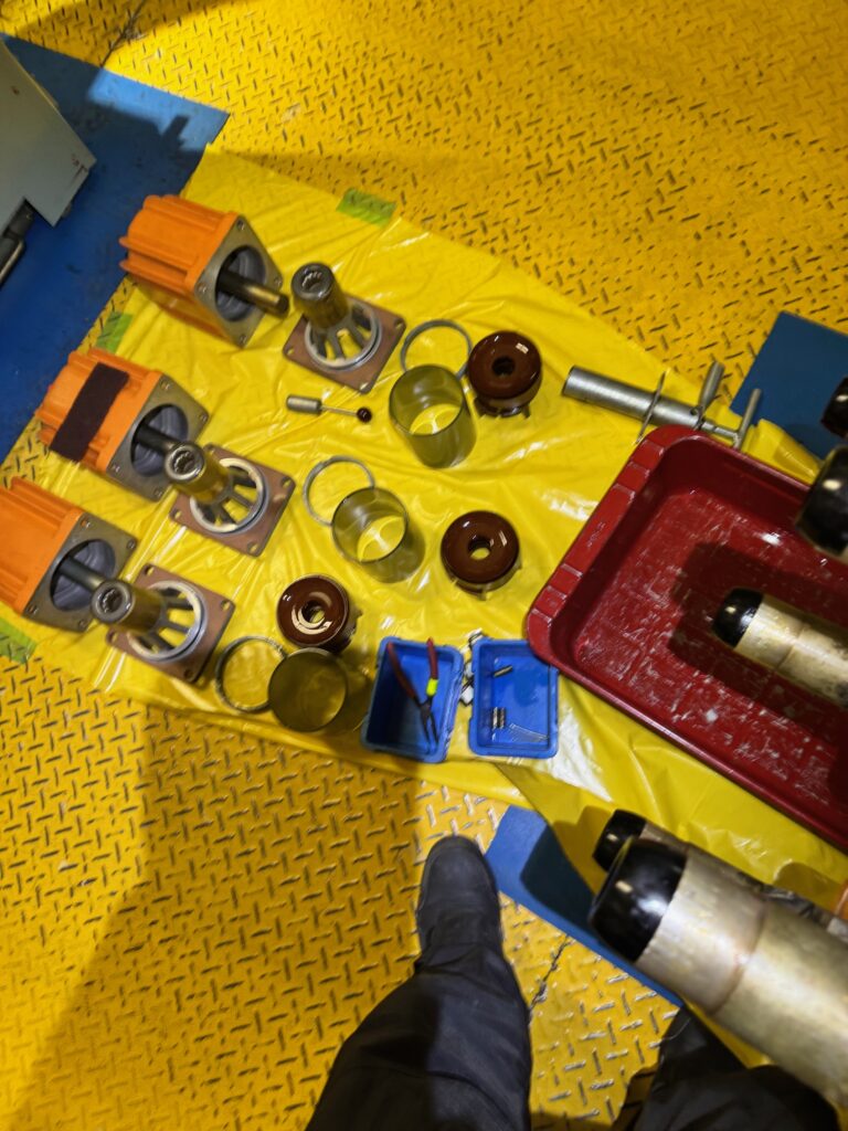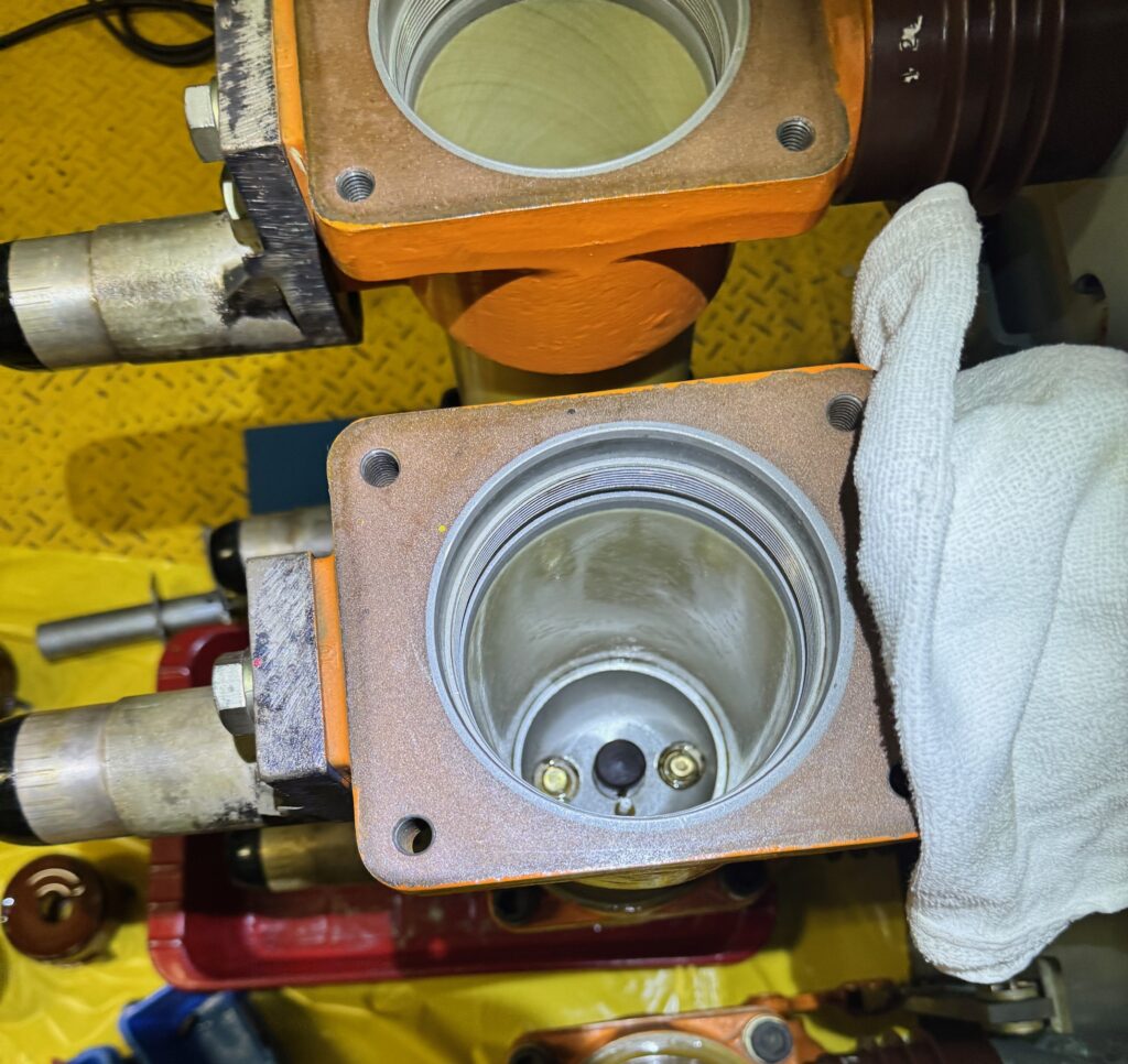 油抜き、消弧室分解点検、各部清掃締付点検、油入れ、機構部手入れ、各部寸法測定、諸試験が一連の流れです。