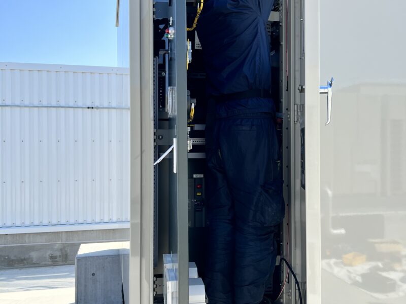 各変台に遠隔監視装置を取り付け、Tr電圧・電流計測用の配線、Tr温度センサー、扉開検知SW、配線ダクトでの配整線等を実際に行いました。