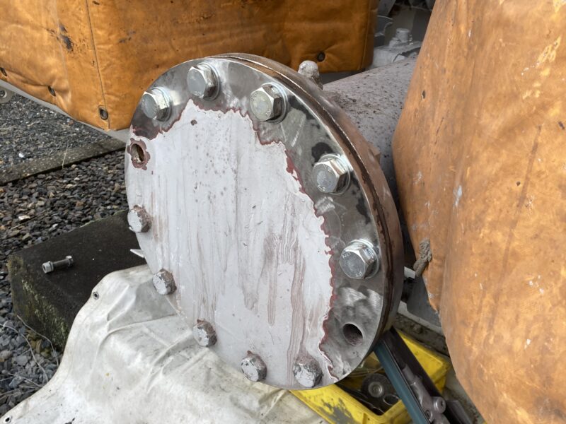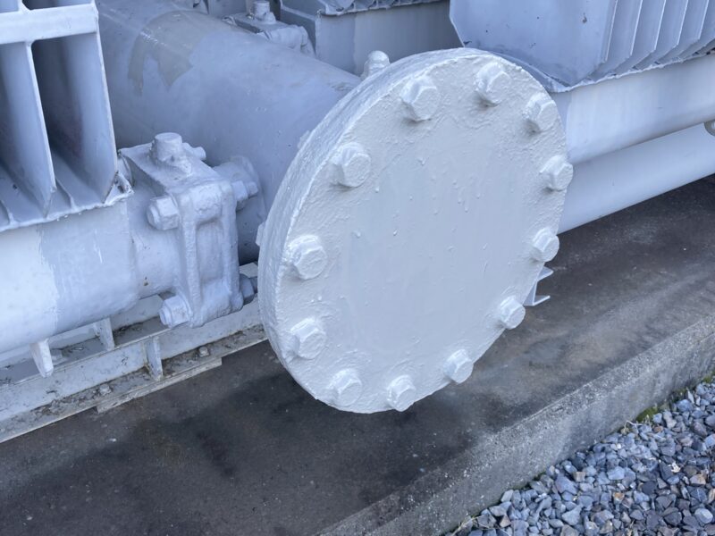とある変電所にて、変圧器のラジエーター導油管エンドのフランジ面から漏油しているため、漏油修理を依頼され、行ってきました。