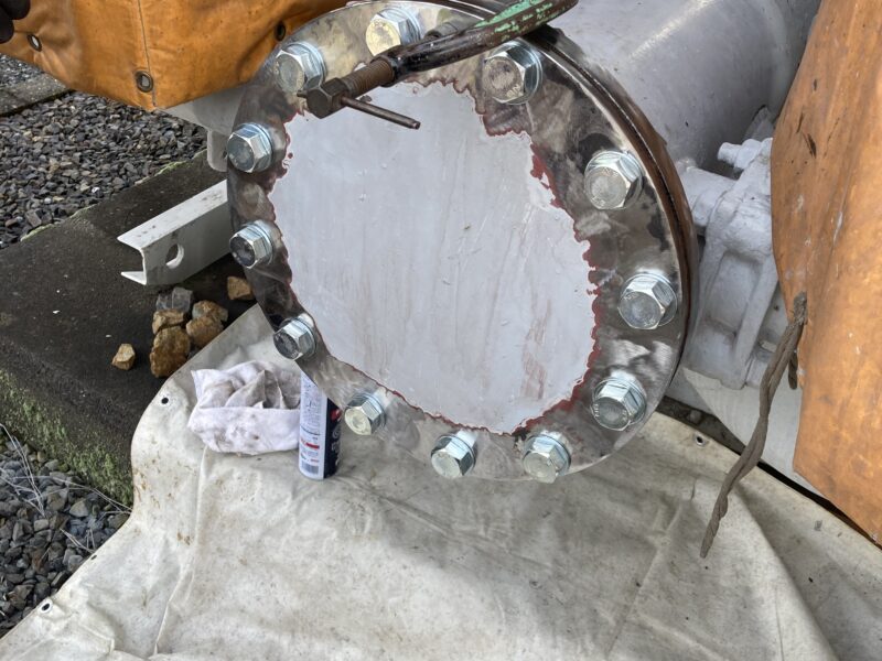 その後、探傷剤をかけ、漏油がないかを確認します。