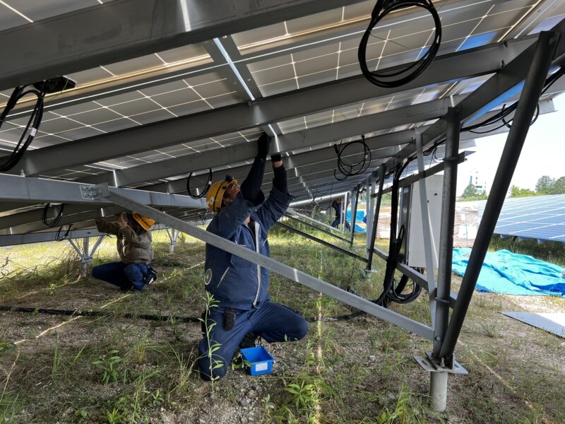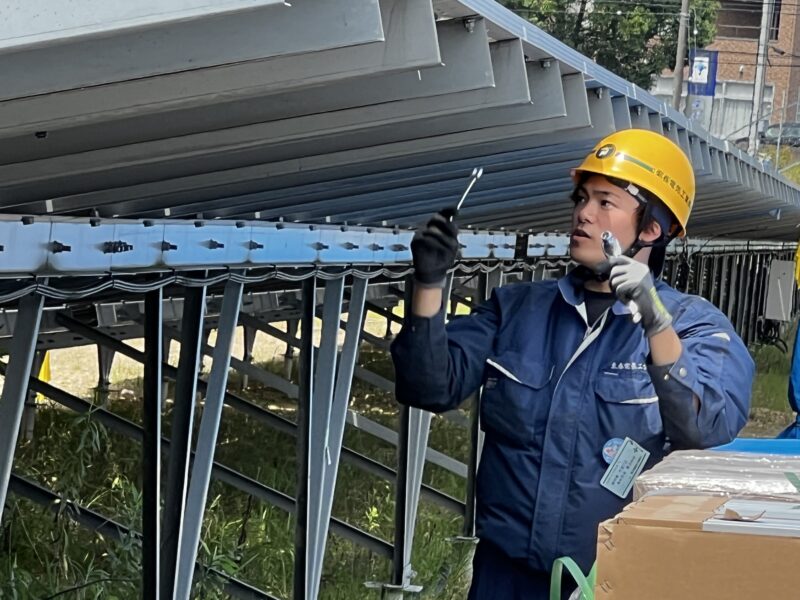 東春電気としても初めての試みで搬入経路・パネルの重さ・据付後の配線など、色々試行錯誤しながらの作業になりましたが、社員同士の考え・意見を出し合い、大きな事故・問題もなく作業が終わりました。