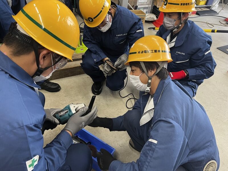 火花が飛び散るのを見て腰が引いていたインターンシップ生もいました。