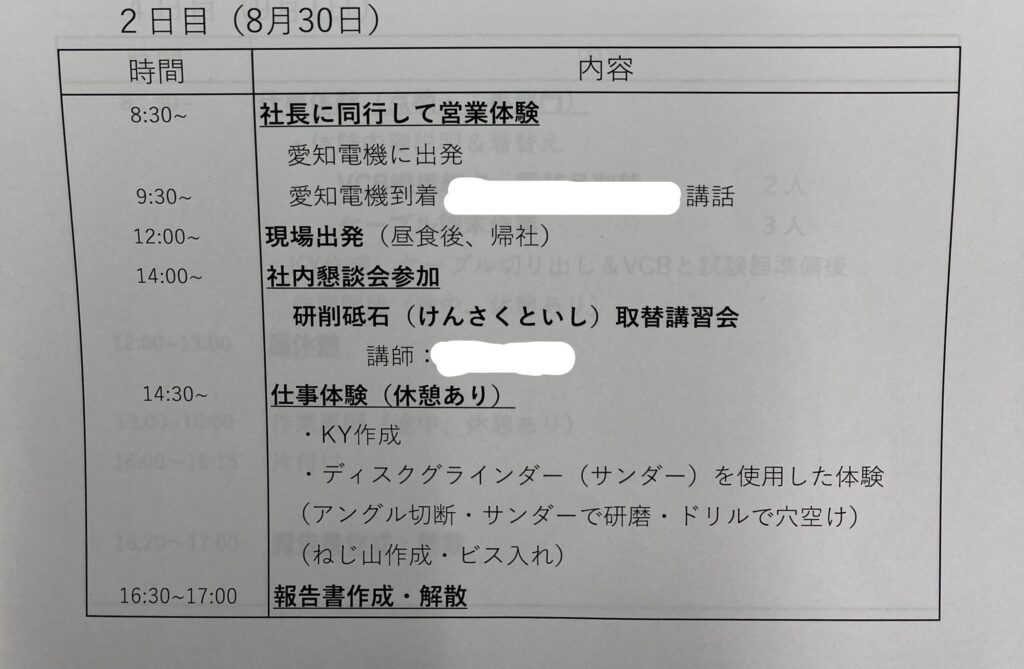 少し前に愛知電機様で電気設備点検を東春電気にて行いましたが、その際の東春電気の良さをインターンシップ生の前で話してもらい、感涙しました。
