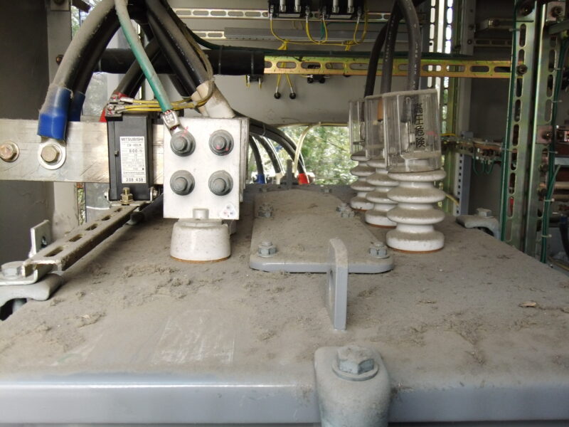 産廃物の収集やリサイクル事業の工場なので、破砕機等があり、キュービクルの中は粉じんやホコリで積もっていました。