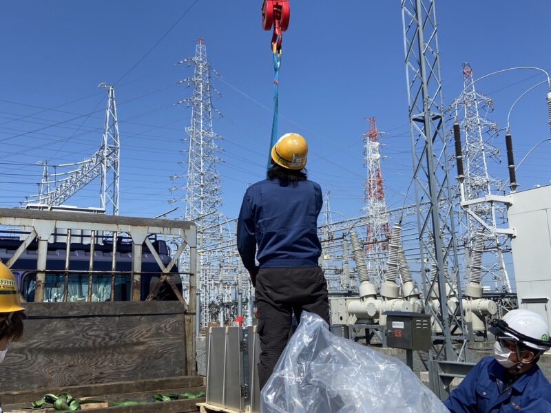 変電所での断路器操作箱の老朽化、部品供給停止による懸念があり、取替に伴う操作箱・資材搬入を行いました。