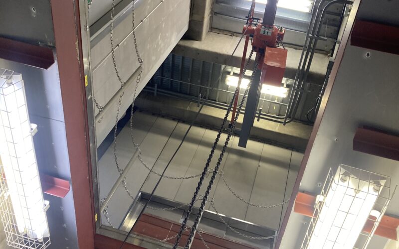 地下変にて点検や工事を行う場合、マシンハッチを開けそこからクレーンにて、