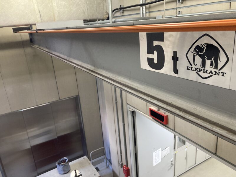 とある変電所にて、変電所内にあるマシンハッチクレーンの点検を行いました。