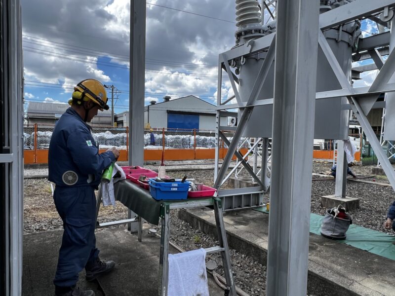 特高変電所は77kV受電、OCB・LS・LA・Trの細密点検、
