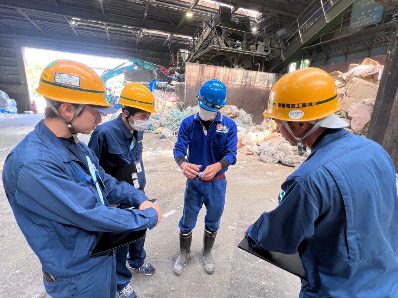 実際に東春電気が仕事する電気設備を見せてもらい、