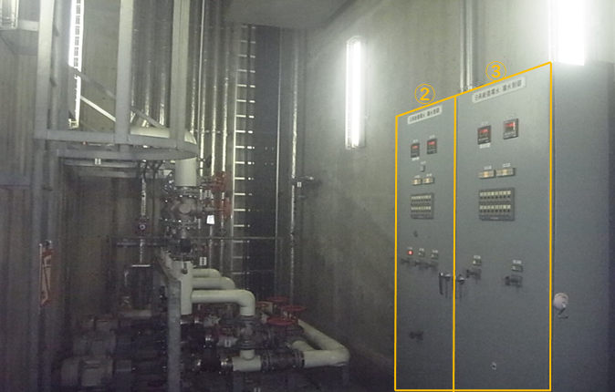 社長ブログや実績にもあった変圧器熱交換器に使用する、油を水で冷やす「冷却水」を制御や監視する盤を取り替えました。