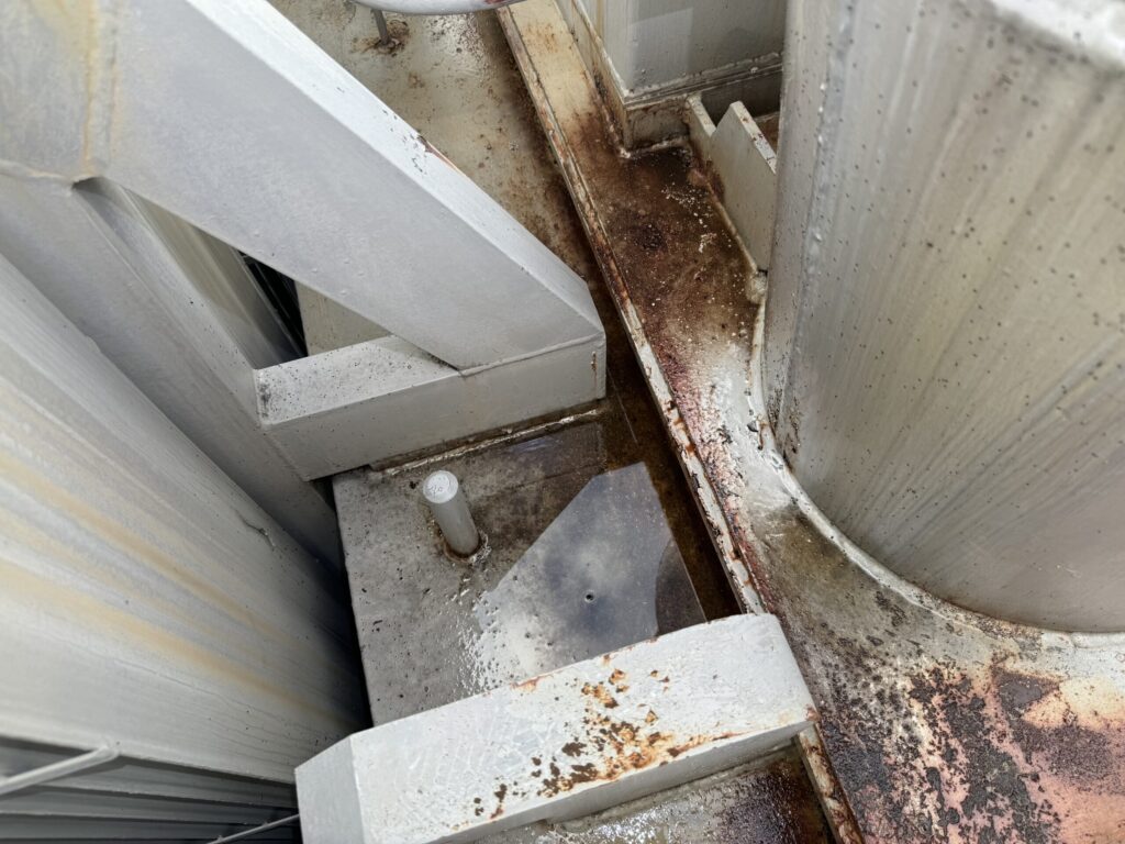 コーキングでボルトやフランジ面の雨水侵入を防ぎ、ボルト・パッキンの劣化を防いで設備延命させることも大切な品質管理の一つです。