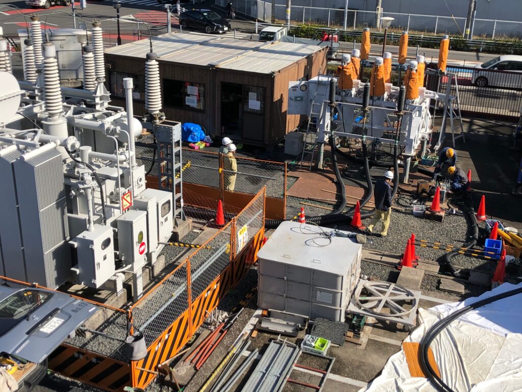とある変電所にて、GISのGCBタンク内から突然絶縁ガスが漏れ、絶縁を保てず電気を送電できないことにより、緊急で遮断器設置をお願いされ、行ってきました。