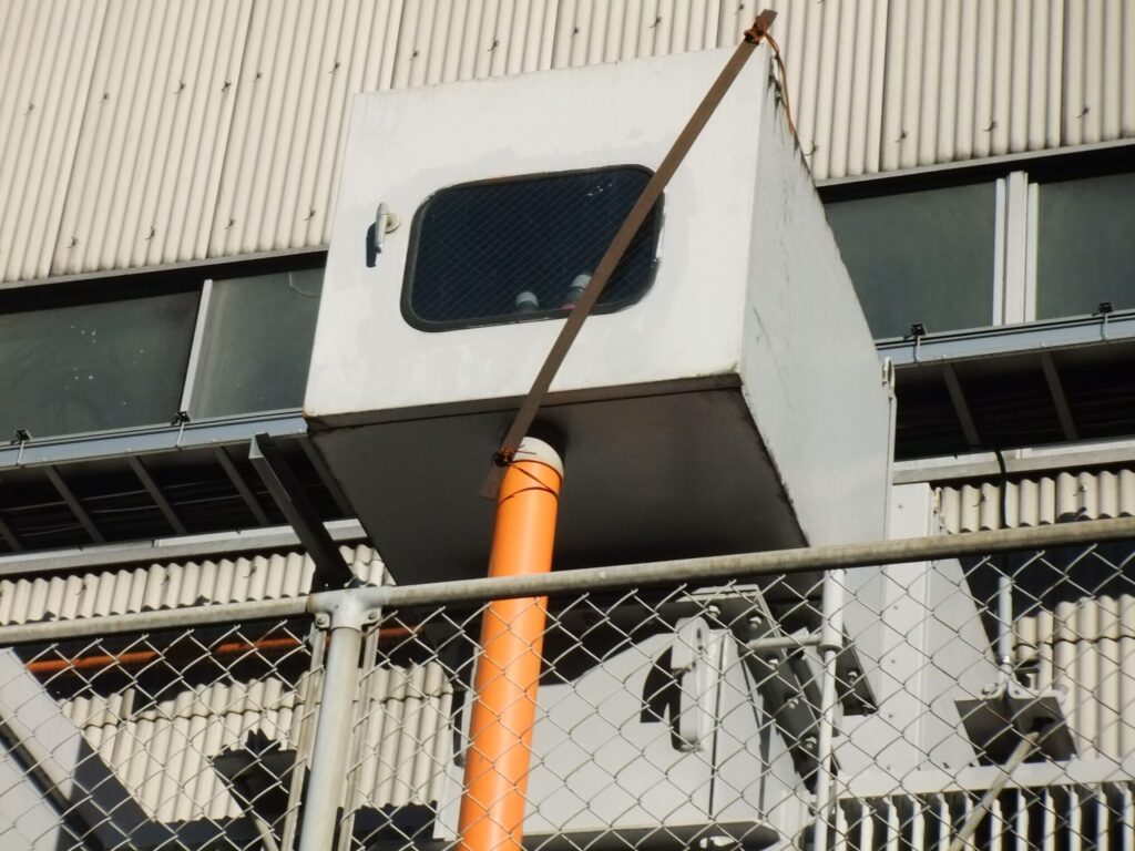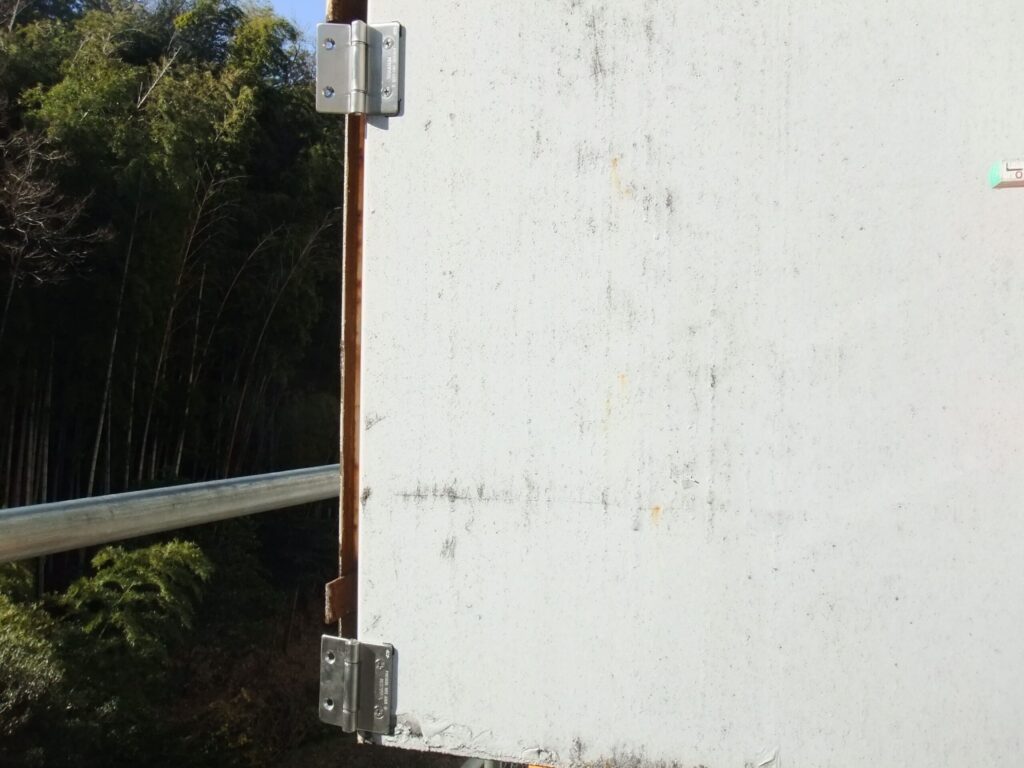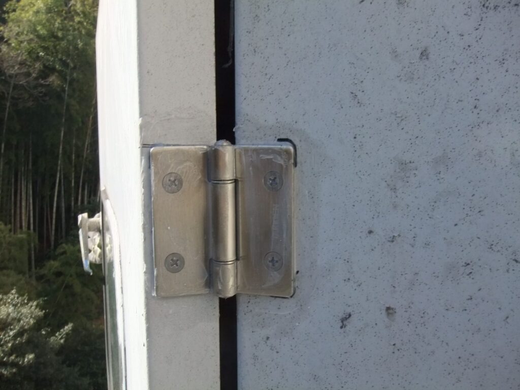 変圧器のダクト扉の蝶番(ヒンジ)部分がサビ・腐食により折損しており、