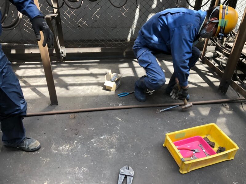 予め会社で修繕する予定の物を作ってから行きましたが、寸法通りビタっとつき、保守点検も行い、無事に復旧しました。