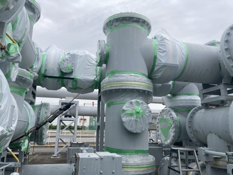 画像に見える通り、コンパクト化はされていますが、たくさんのフランジや、ガス圧を確認するためのメーターに送っている黄色いガス配管があります。