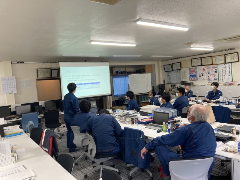 今回は現場ではなく、東春電気社内にて懇談会とプレゼンを行った様子を取り上げようと思います!